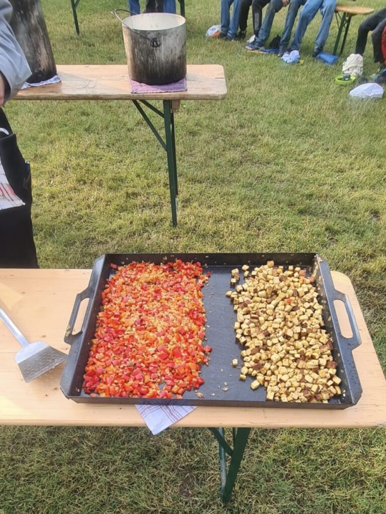 Am Samstag haben sich die Pfadis in drei Gruppen in das Piratenabenteuer gestürzt. Nach dem Finden des Schatzes klärte sich das Wetter auf und die Sonne schien. Das haben wir genutzt und sind in das nahegelegenen Freibad in Almke gegangen. Zum Abendessen gab es ein echtes Highlight: frisch gebratene Kartoffelpuffer mit Apfelmus. Alle haben ordentlich zugelangt. Danach wurde wieder gesungen.