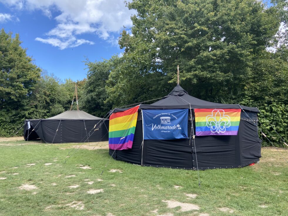 Vom 22. bis 24. August haben wir Pfadis unser Abzelten auf dem Platz in Almke verbracht – unter dem Motto Piraten. Der Freitag wurde damit gestartet, den Anhänger auszupacken und fleißig alle Zelte aufzubauen, wobei jeder mit angepackt hat. Am Abend haben wir die erste Singerunde am Lagerfeuer gemacht. Mit Gitarren und einer gemütlichen Runde klang der erste Tag richtig schön aus.